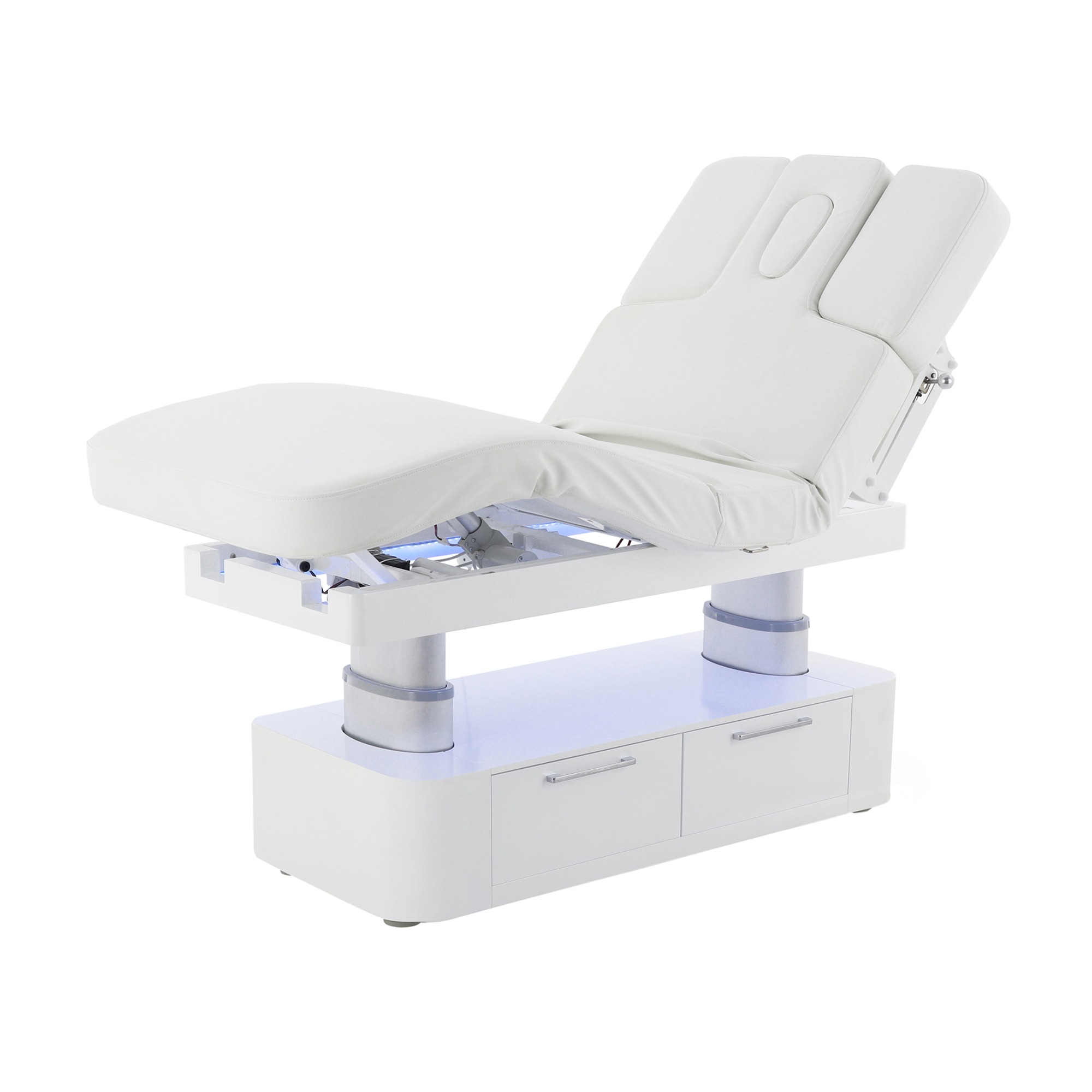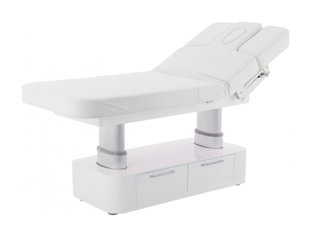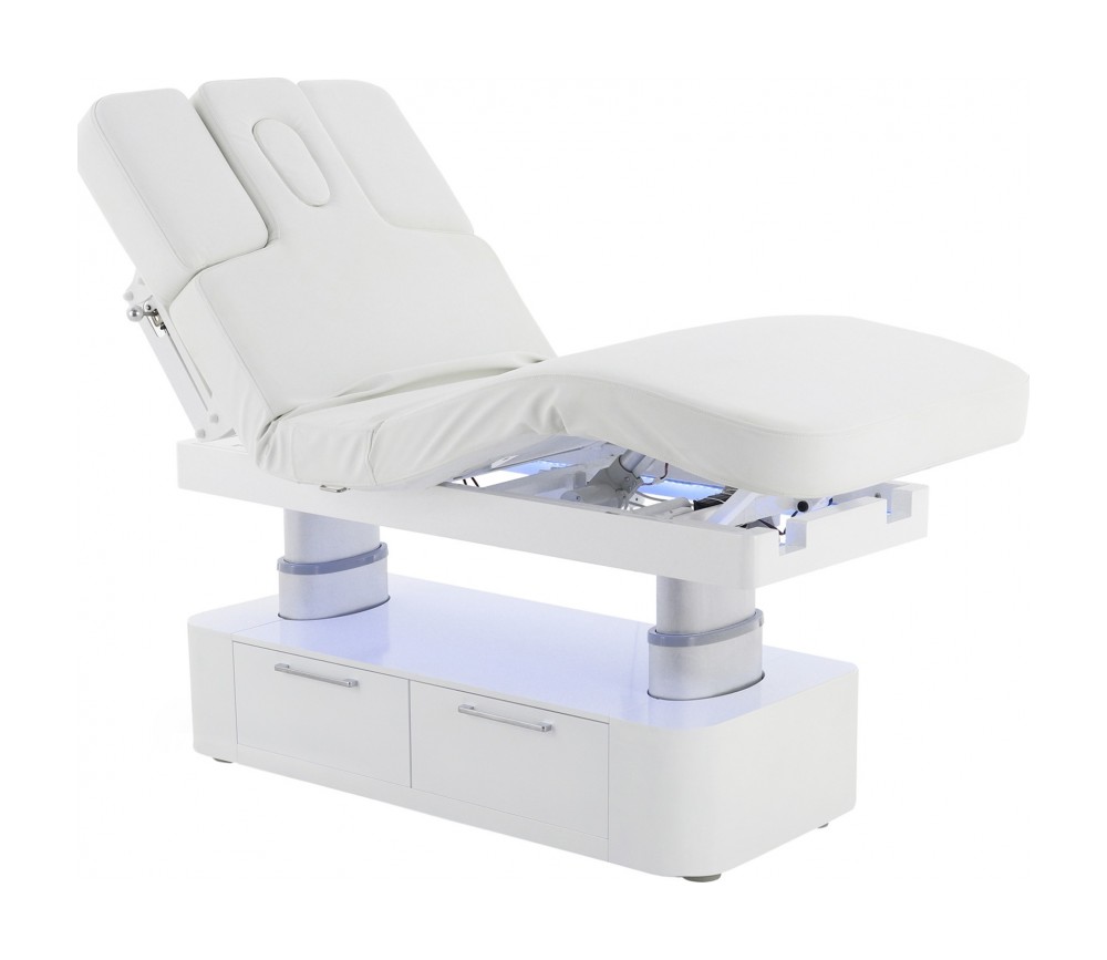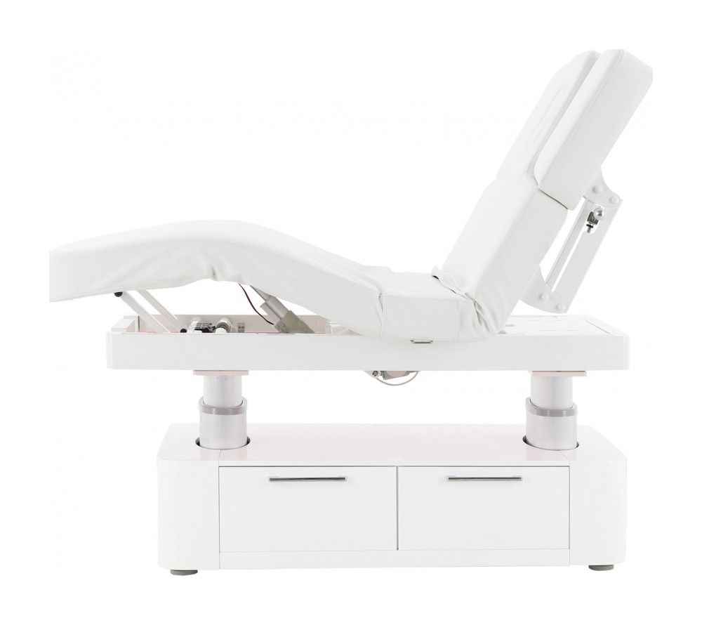 Многофункциональное массажное кресло с электроприводом для оснащения косметологических центров, массажных кабинетов и салонов красоты по последнему слову техники! Массажное кресла – это: Надёжный стальной каркас, покрытый ударопрочный эпоксидной эмалью Многосекционное ложе с удобной системой регулировки Пульт управления с мембранными кнопками для защиты от влаги и загрязнений Экологически безопасные гипоаллергенные материалы Прогрессивный дизайн, который выгодно подчеркнёт статус заведения Материал обивки – полиуретановая кожа – имеет приятную на ощупь фактура, устойчив к влаге и истиранию.  Наполнитель – гипоаллергенный ППУ – не боится деформации, легко подстраивается под форму тело и быстро возвращается в прежнее состояние.  Массажное кресло прошло все необходимые испытания и получило регистрационное удостоверение Росздравнадзора. Покупая наши товары, вы можете быть уверены, что приобретаете профессиональное медицинское оборудование, соответствующее всем критериям качества.