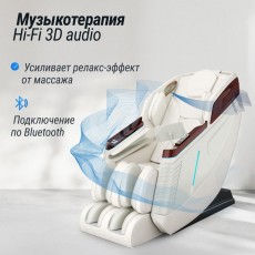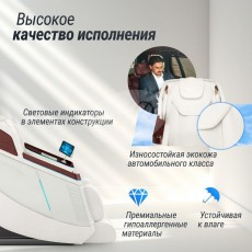 - Возможности. Автоматическое обнаружение и точная настройка положения плеч, изгибов тела и массажных акупунктурных точек, аэромассаж верхней части тела, функция аэромассажа ладоней (4 воздушных массажера), функция аэромассажа рук ((4 воздушных массажера), 3 уровня интенсивности давления воздуха. Аэромассаж нижний части тела: функция аэромассажа икр (12 воздушных массажера) + 3 уровня интенсивности давления воздуха. Воздушные массажеры для левой и правой ладони оснащены функциями ударного массажа и магнитной терапии. Функция роликового массажа ступней состоит из трех комплектов валиков, которые  массируют пальцы и ступни ног, своды ступней, скорость регулируется тремя положениями. Скребковый массаж с роликами для ног, телескопическая функция для упругих ног.